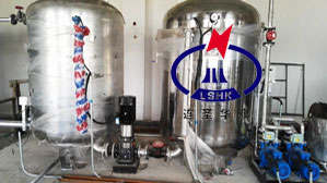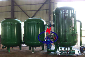四、三位一體真空電化學除氧器設(shè)備組成 三位一體真空電化學除氧器主要是由除氧器(除氧頭)、高效旋膜裝置、連續(xù)反應(yīng)電解缸、增壓泵、真空泵機組、引水泵機組、PLC控制箱等部件組成。 三位一體真空電化學除氧器配有電解器,內(nèi)裝設(shè)有高效旋膜裝置, 將自然降膜改為強力旋膜,增加液膜的更新度,并造成液膜沿管壁強力旋轉(zhuǎn),增強分散、傳質(zhì)功能;將相應(yīng)泡沸改為懸掛式泡沸?朔䦟又兴魉俑邥r泛點(飛濺),并將保持汽(氣)體通道;將獨立的三種傳熱傳質(zhì)方式縮化為一體,在一個單元的部件內(nèi)完成。由于它具有很高的效率和某些特殊功能,突破了其它除氧器的技術(shù)性能。 三位一體真空電化學除氧器運行時,除氧器處于負壓狀態(tài)。在高位安裝時,電解罐出口與鍋爐給水泵進口的距離應(yīng)較大,不小于10米;低位安裝時,電解罐出口與引水泵機組相聯(lián)接,使負壓水升壓后進入鍋爐給水泵。真空泵機組中配用了特種真空泵,具有設(shè)計結(jié)構(gòu)緊湊,耗功極低。并具有很高的抽吸效率,在同等條件下抽氣量比其它真空泵高一倍。噪聲低,無振動,安裝布置更簡單。引水泵機組的作用是在除氧器低位安裝時,通過引水泵將負壓水升壓后接入鍋爐給水泵。 三位一體真空電化學除氧器投運,第一步把除氧器的冷卻水箱的水位補到溢流口,溢流口閥門為開式,冷卻水箱的補水口也是正常補水,保證冷卻水箱水溫在30℃,關(guān)閉相關(guān)閥門,先把除氧器的水位補到運行標準水位。啟動真空泵,打開吸入管道上的閘閥,除氧器的真空度達到-0.09Mpa時,打開進水閥門,開啟鍋爐給水泵,被除氧水進入旋膜器,在0.2Mpa的水壓下形成高效率水膜裙,在高真空下運行,把水溫度提高約30℃-60℃,氧氣充分吸出被真空泵吸出排入冷卻水箱。除過氧的給水進入電解器電解除氧,再次進入電化學罐除氧,除氧水被排入三級化學罐進行化學除氧,鍋爐給水泵將除過氧的水送給鍋爐。除氧器停用時必須先關(guān)閉吸入管道上的閘閥,再停真空泵,如果先停真空泵,不關(guān)吸入管道上的閘閥,除氧器處于真空狀態(tài),會將冷卻水箱的水倒吸至除氧器,影響除氧效果。 五、三位一體真空電化學除氧器自動控制系統(tǒng) 1、設(shè)備正常運行屬全自動控制,無人值守,設(shè)備全套運行由PLC智能控制,所有運行參數(shù)及控制點都由PLC自動監(jiān)測、自動調(diào)整。所有閥門及真空泵組自動控制開啟(亦可手動開啟)。 2、設(shè)備在線運行真空度控制在-0.08Mpa以上。確保除鹽水進入除氧器,并在高效旋膜裝置內(nèi)強力旋轉(zhuǎn),形成水膜裙,氧氣得到充分析出。一旦真空度低于-0.08Mpa,設(shè)備自動報警,PLC控制系統(tǒng)自動啟動電化學除氧,此時需人員進行現(xiàn)場調(diào)整修復。當真空度修復PLC控制系統(tǒng)自動停止電化學除氧。 3、水位由液位自動控制器控制,如水位低于設(shè)計水位時設(shè)備將自動報警。PLC控制系統(tǒng)自動打開旁路進水閥。水位修復PLC控制系統(tǒng)自動關(guān)閉旁路閥。 4、PLC自動跟蹤控制電動給水調(diào)節(jié)閥及真空度,始終保持兩極真空電化學除氧器處于安全穩(wěn)定運行。 六、三位一體真空電化學除氧器訂貨須知 三位一體真空電化學除氧器進行技術(shù)選型需提供如下數(shù)據(jù): 1、兩極真空電化學除氧器的出力。 2、兩極真空電化學除氧器的安裝高度。 3、兩極真空電化學除氧器進水壓力,進水溫度。